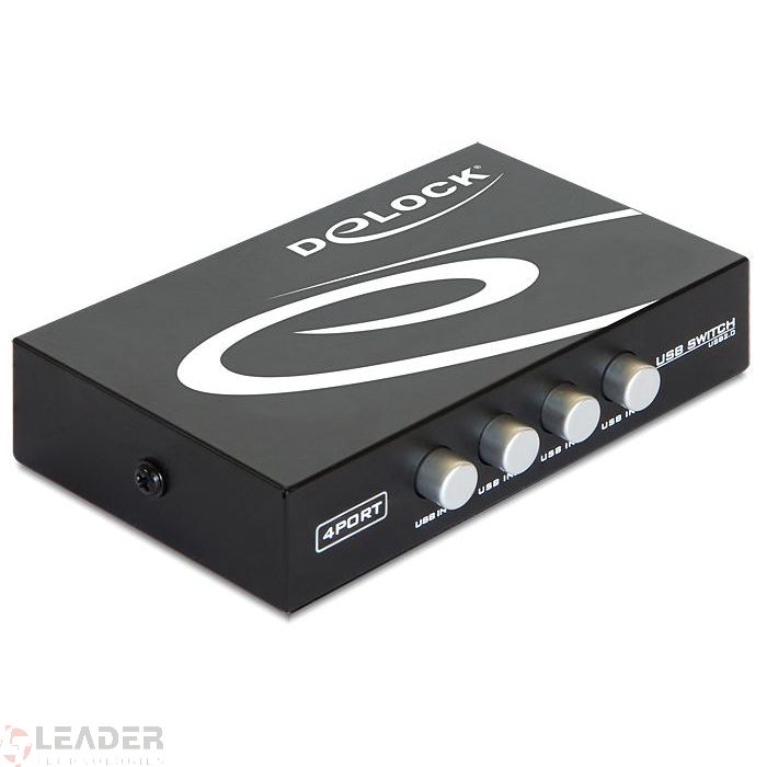 <p>Превключвател на Delock за свързване на едно USB устройство (твърд диск, принтер, скенер) към четири <br />компютъра или лаптопа. С помощта на един от четирите бутони може ръчно да избере кое PC/лаптоп да <br />управлява USB устройството. <br /><br />• Конектори:<br /> Вход: 4 x USB 2.0 Type-B женско<br /> Изход: 1 x USB 2.0 Type-A женско<br />• 4 механични бутона<br />• Метален корпус<br />• Не е необходимо външно захранване<br />• Размери: ca. 112 x 67 x 29 мм<br />• Цвят: черен</p>